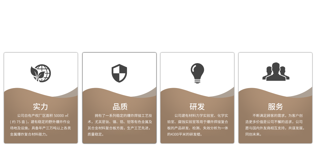 - 安徽弘雷金屬復合材料科技有限公司成立于2013年5月,坐落于宣紙之鄉—安徽省宣城市,專業從事各類金屬爆炸復合材料研發(fā)、生產、銷售和咨詢。注冊資本伍仟萬元,自有產權廠區6萬余平方米(約90畝),建有自有產權的野外爆炸作業場地及設施,具備年產四萬噸以上能力。...